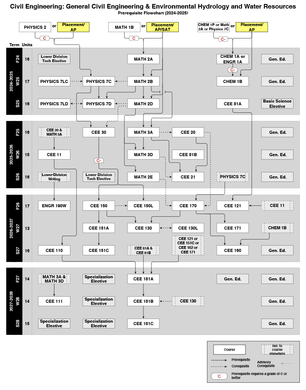 The goal of the Civil Engineering curriculum is to prepare graduates for a career in practice, research, or teaching. At the undergraduate level a common core of fundamental subjects is provided, and students are required to specialize in their senior year. Specializations are offered in General Civil Engineering, Environmental Hydrology and Water Resource Engineering, Structural Engineering, and Transportation Systems Engineering. Concentrations are offered in Computer Applications, Engineering Management, Infrastucture Planning, and Mathematical Methods. Graduate opportunities are in three major thrust areas: structural analysis, design, and reliability; transportation systems engineering; and water resources and environmental engineering.