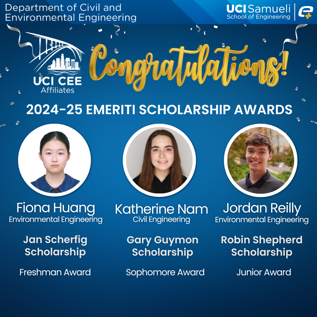 There are four scholarships specific to undergraduates in the Department of Civil and Environmental Engineering: