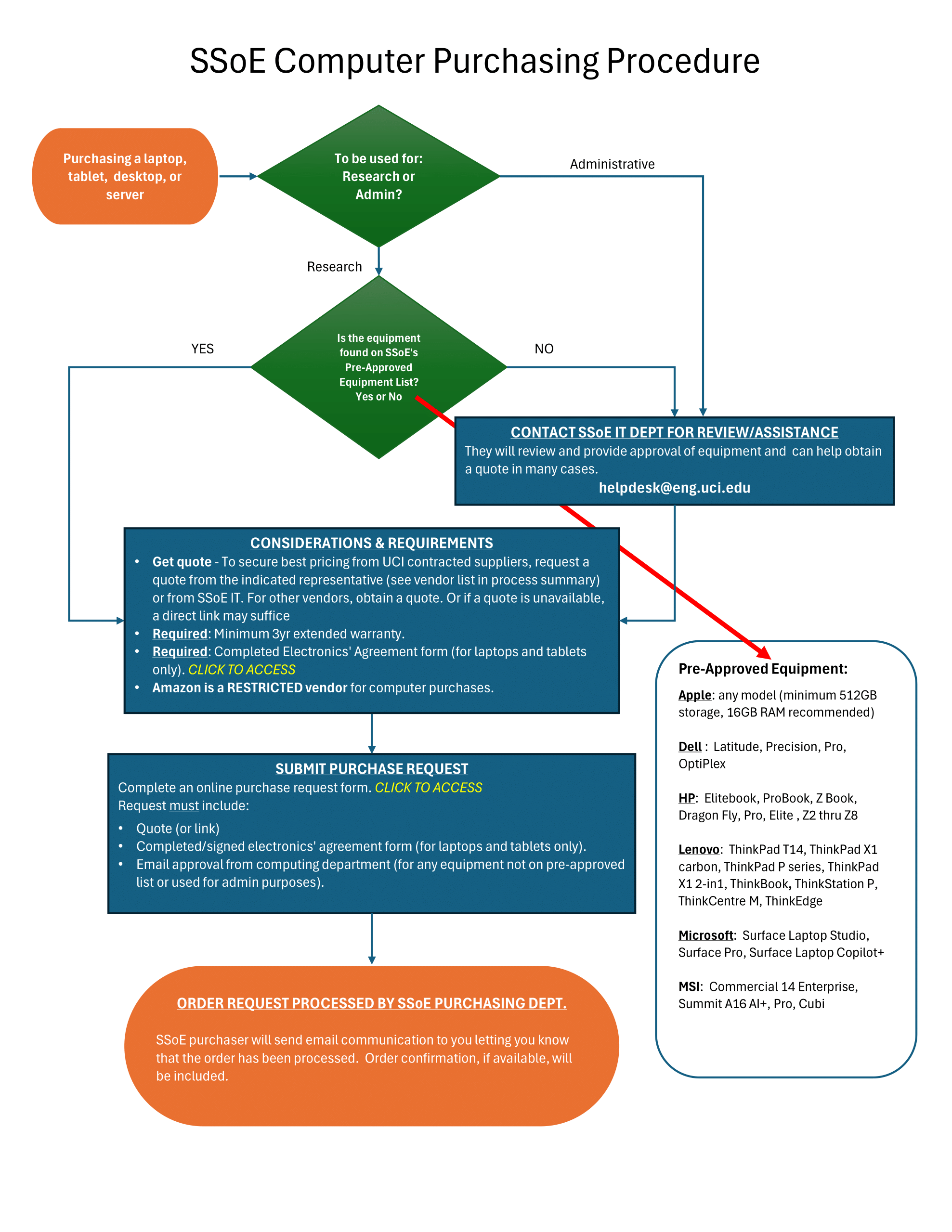 - SSoE IT Department: helpdesk@eng.uci.edu - For review, assistance, equipment approval, and quote help
