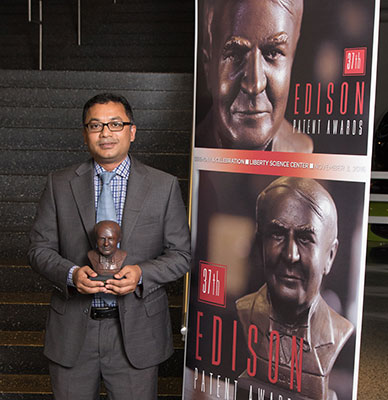 Nov. 7, 2016 - Mohammad Al Faruque, electrical engineering and computer science assistant professor, was honored last week by the Research & Development Council of New Jersey with a Thomas Alva Edison Patent Award.